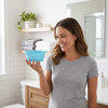 Faltbares, weiches Silikon. Leicht zu reinigen. Kein Tropfen, kein Chaos. Passt in jedes Badezimmer.