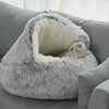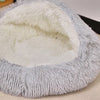Die halbgeschlossene Höhlenform vermittelt Sicherheit, während der flauschige Plüsch Wärme speichert. Dein Tier kann sich einkuscheln, verstecken oder einfach entspannt schlafen – ganz nach seinem Bedürfnis.